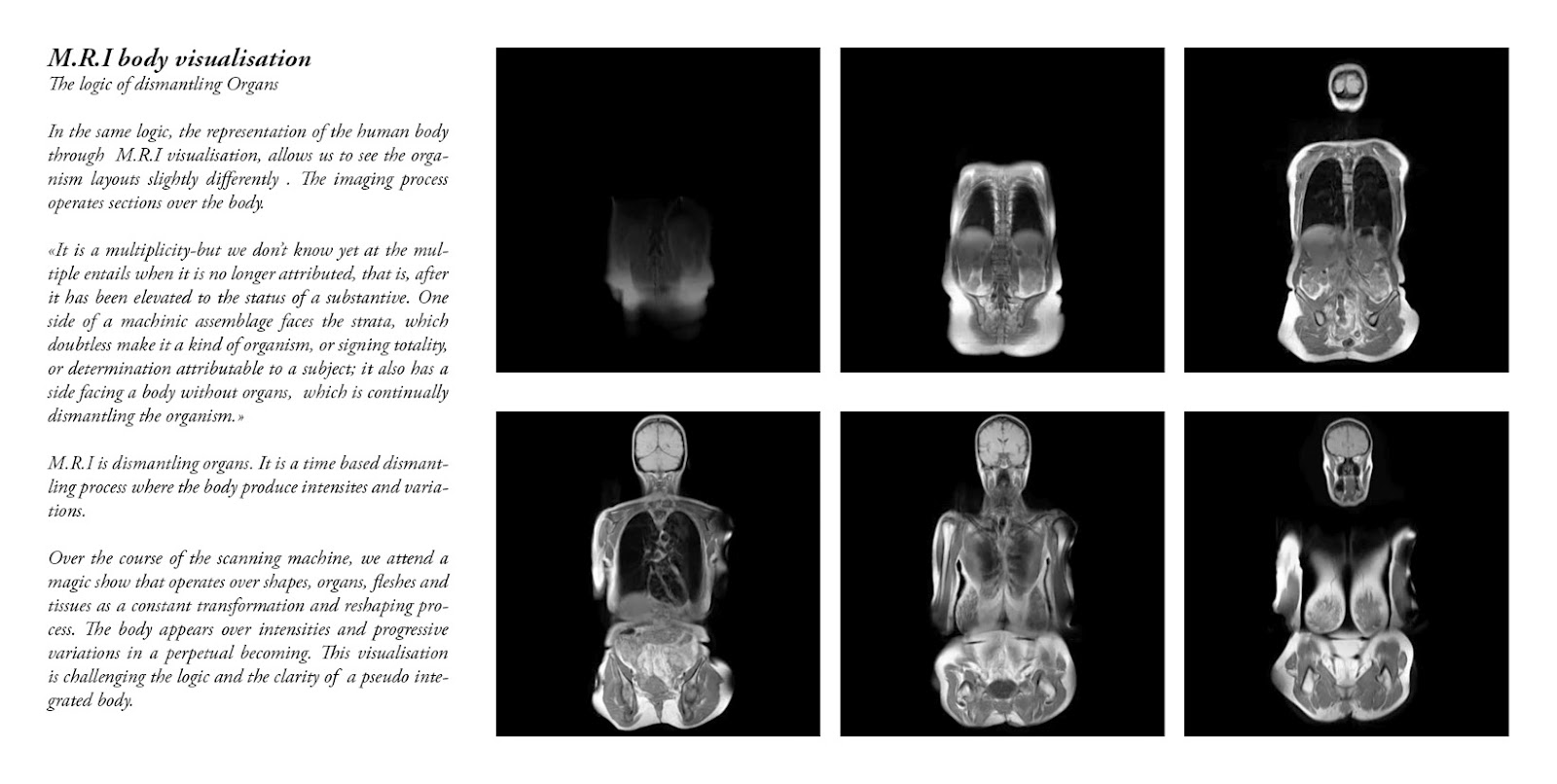The document is a "work in progress" cloud or whirlpool brain growing as anarchic rootlets, rather than a finished theory or a complete story. The thesis is an intuitive and rigorous experimental adventure into a world of variations. This field of exploration allows to focus on the fantastic quality and ability of wild systems to embody complex behaviours: independent ecosystems, morphologies of living agences, geological transformations and climate changes, but also, internet networks, traffic jams...